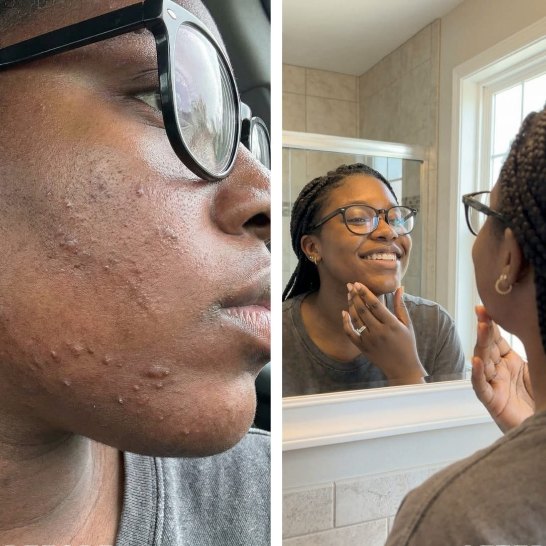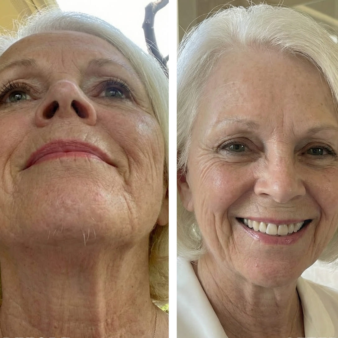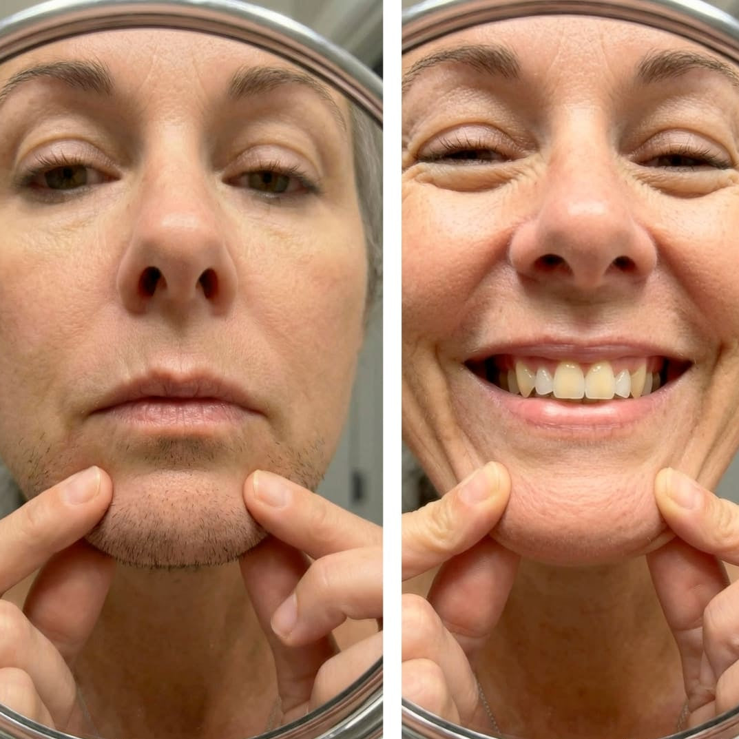 51 ans et la ménopause m'a donné des poils au menton que j'avais jamais eus. Je l'utilise depuis environ un mois et j'ai à peine besoin de m'épiler à la pince maintenant. C'est mon visage nu sans filtre. Ça dit tout.