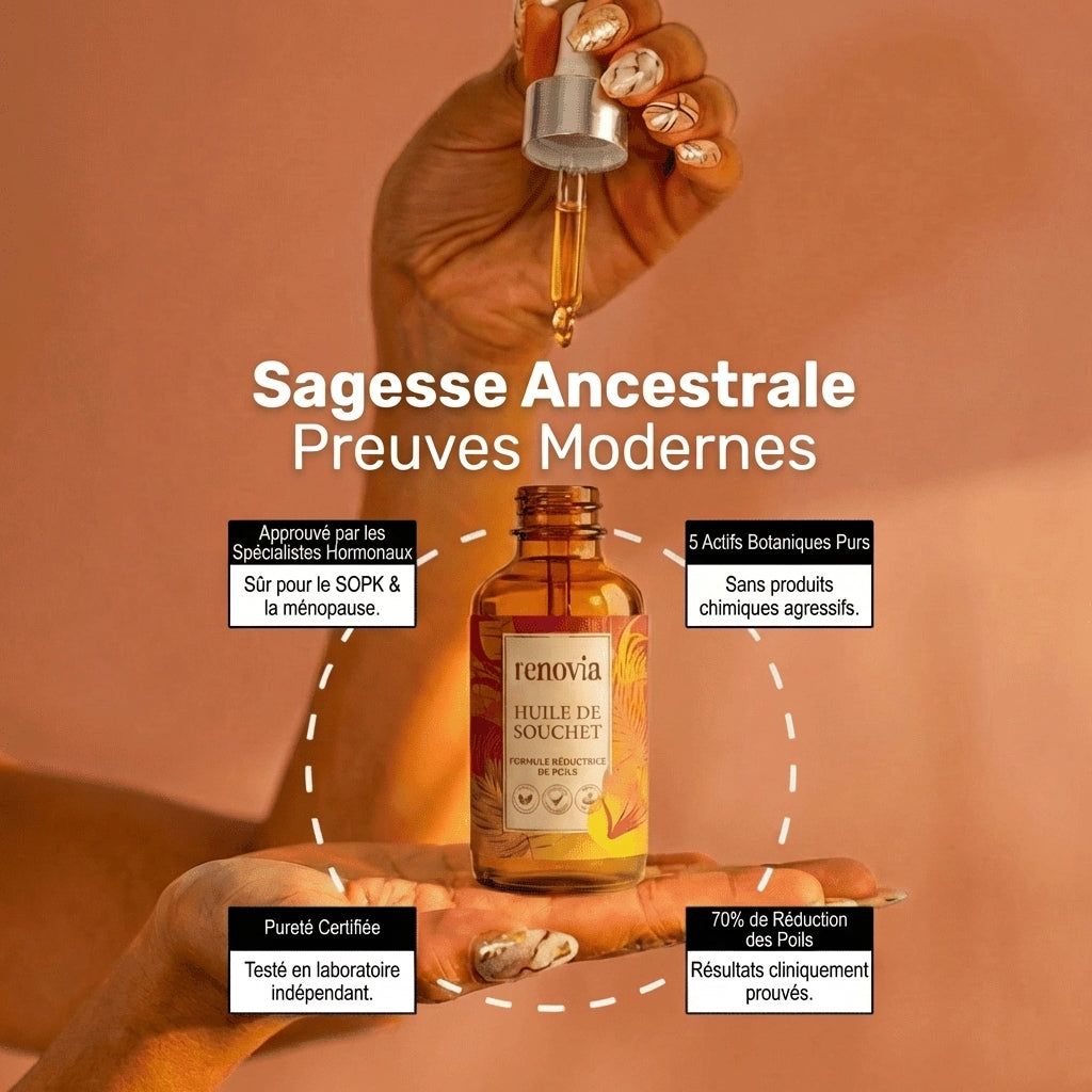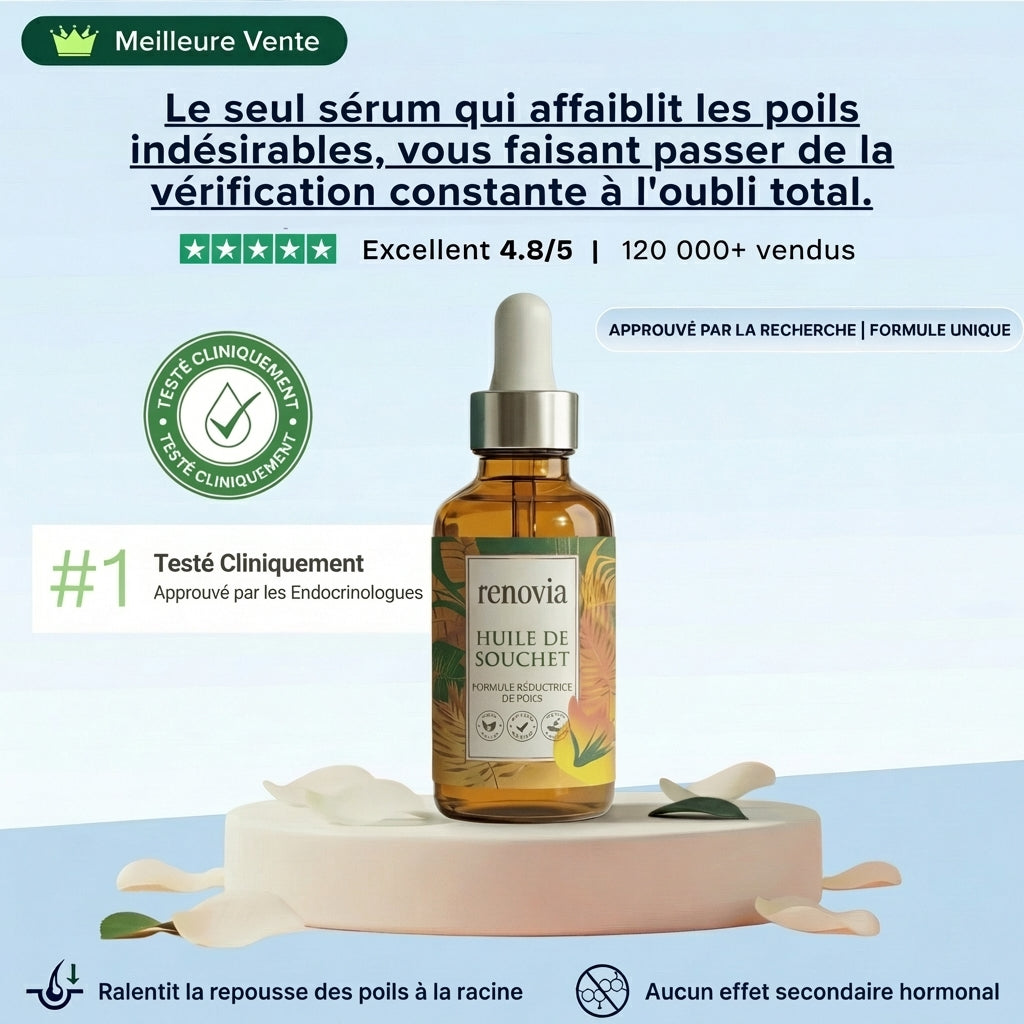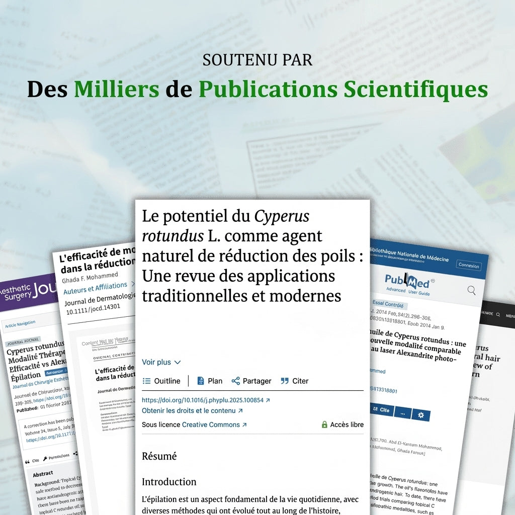 La formule au Cyperus Rotundus d'Renovia n'est pas une tendance Internet de plus — elle est soutenue par de véritables études cliniques sur l'inhibition de la croissance des poils. Le même ingrédient botanique auquel les Égyptiennes faisaient confiance depuis des siècles, désormais perfectionné grâce à des méthodes d'extraction modernes que les professionnels de santé recommandent réellement.